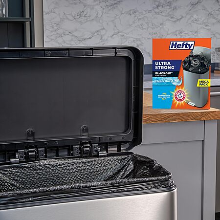 Model: Hefty Ultra Strong Tall Kitchen Trash Bags, Blackout, Clean Burst, 13 Gallon, 110 Count