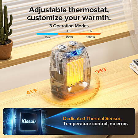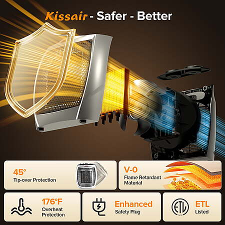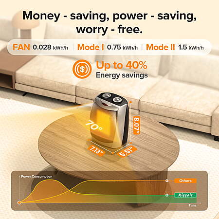 | Product Description: | KISSAIR is a brand you can put your faith in. Our space heater, ETL certified, signifies top-notch safety and performance. It features multi-mode control for all-season comfort, safety elements such as overheat protection and a bottom tip switch, a portable and compact design for convenience wherever you are, and V - 0 flame retardant material for extra security. Experience low noise and rapid heating. With KISSAIR, you obtain dependable warmth and comfort. Ideal for home and Christmas, bringing delight. Select KISSAIR for a warmer, improved lifestyle. 【Multi-Mode Temperature Control】: It features three modes: a powerful 1500W heating (third gear), 750W energy-saving low heat, and a natural wind mode. You can freely switch among them throughout the seasons of spring, summer, autumn, and winter, adapting to various temperature environments and adjusting the thermostat. This allows you to enjoy the perfect temperature all year round and have a customized heating experience according to your needs. 【Dual Safety Protection】: Equipped with an overheat protection sensor that constantly monitors the temperature to prevent overheating. The bottom tip switch automatically shuts off the blower when the heater is accidentally knocked over or tipped, ensuring the safety of you and your family. You can use it with complete peace of mind, knowing that it has reliable safety features to protect you from potential risks. 【Portable and Compact】: With a compact design, its size is only 8.07*7.13*5.51 inches. It comes with a hidden handle, making it extremely convenient to carry. You can easily take it to any corner of the room, whether it's the living room, bedroom, study, or even when you're traveling or at the office. Just plug it in and enjoy the warmth instantly, adding convenience to your life. 【Low Noise and High Efficiency】: It operates with a noise level lower than 45 dB, ensuring that it won't disturb your work or sleep. The 2S rapid heating function allows you to feel the warmth quickly. You can quickly transition from a cold state to a warm and cozy one, whether you're coming back home on a cold day or waking up in the middle of a chilly night. Enjoy a quiet and warm environment that promotes relaxation and comfort. 【V-0 Flame Retardant Material】: We use V - 0 flame retardant material, which has excellent flame retardancy. It meets strict safety standards and significantly reduces the risk of fire. This not only provides you with a warm heating experience but also gives you the assurance of safety, allowing you to enjoy the warmth without any worries and making your heating process more secure and reliable. |