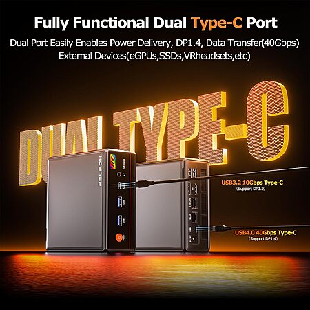 - 1x USB 4.0 Type-C 40 Gbps (DP 1.4, 4K@120Hz, 100W PD In to the PC)