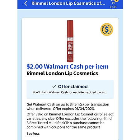 $2 WM Cash + Rimmel Stay Glossy Lip Gloss, Pink About It 450 $3.97, others $4.14+