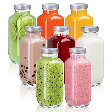 umud Juice Bottles with Lids, 16 Oz - Set of 8 - Clear Glass Jars with Caps - $12.44