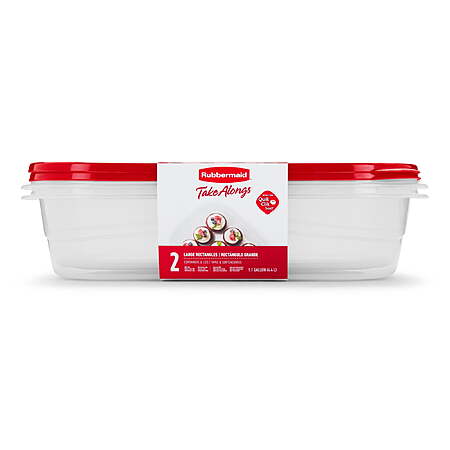 | Product Description: | Store, organize, and pack a variety of foods with these Rubbermaid TakeAlongs Large Rectangles 1-Gallon Food Storage Containers. The large serving size makes them ideal for bigger servings, parties, leftovers, meal prep, pantry, and craft storage, too. The snap of the Quik Clik Seal lids helps you know they're closed tight, and graduation marks help you neatly measure out portions. These stackable BPA-free containers are freezer and top-rack dishwasher safe, and have microwave-safe bases. Rubbermaid TakeAlongs Large Rectangular Food Storage Containers, 1 Gallon, Tint Chili, 2 Count Large food storage containers are great for large serving, party platters, leftovers, and meal prep, plus pantry and craft storage Quik Clik Seal lids make an audible click to let you know they're securely closed Lids have ridges for easy stacking, so they take up less space in your cabinets Graduation marks on bases for convenient measuring Set includes two 1-gallon rectangular containers and lids.Microwave-safe base, BPA free, freezer safe, and top-rack dishwasher safe |