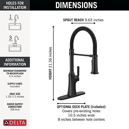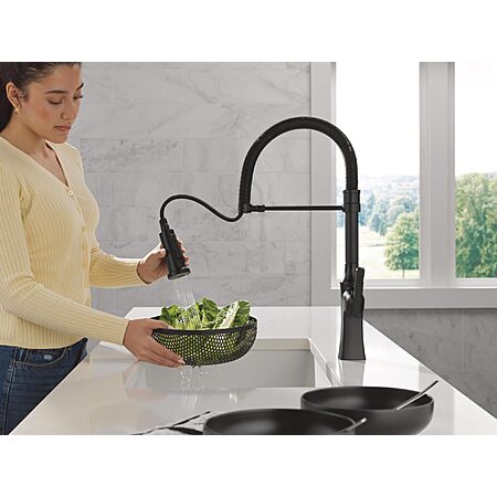 $250.00: Delta Ermelo Pro Style Commercial Kitchen Faucet with Pull Down Sprayer, Single Hole Matte Black Kitchen Sink Faucet, Single Handle, Matte Black 18887-BL-DST