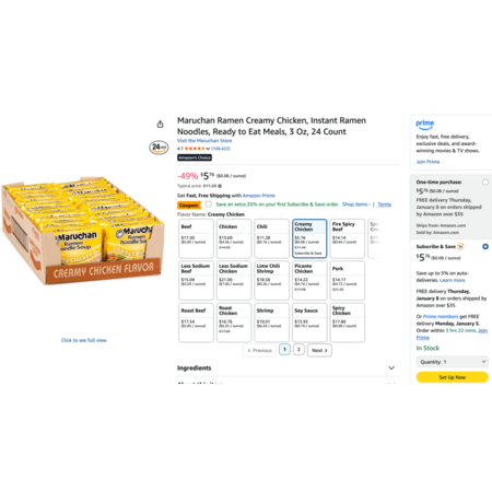 24-Count 3-Oz Maruchan Creamy Chicken Instant Ramen Noodles