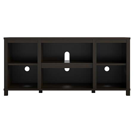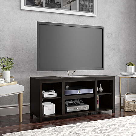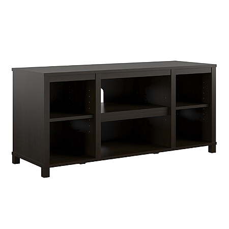 The Parsons TV Stand is just the right size for your flat paneled TV up to 50" wide. This TV console has tons of open storage so you can keep your media components and gaming systems in the two center shelves and still have room to organize your books and remotes on the other four shelves. The wire management holes in the back panel keep your cords organized and tangle free. With engineered construction, the neutral woodgrain finish adds a modern touch to your space. The entertainment center ships flat to your door and requires assembly upon opening. Two adults are recommended to assemble. Assembled dimensions: 20.875"H x 45.375"W x 15.75"D.