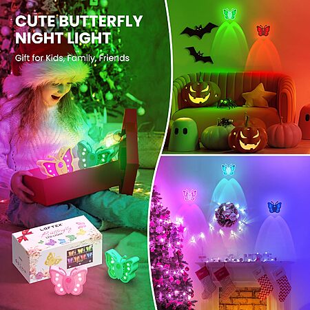 LOFTEK Rechargeable Motion Sensor Light, RGB Color Change & Dimmable Night Light,, Black, Pack of 4 - $4.99