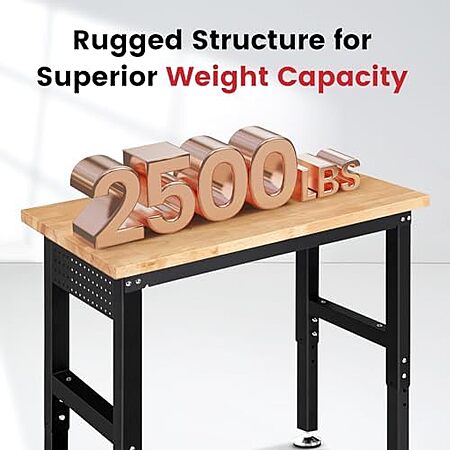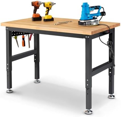 48" ENJOYWOOD Adjustable Height Garage Workbench w/ Rubberwood Top & Outlets
