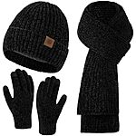 $9.98* | Clothirily Women's 3-in-1 Winter Beanie Hat, Scarf & Gloves Set (Black) at Amazon