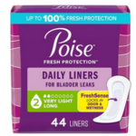 • The 48-ct Poise Daily Incontinence Panty Liners (Very Light Absorbency, Regular Length) are rated 4.7 out of 5 stars based on over 5k Walgreens customer reviews.