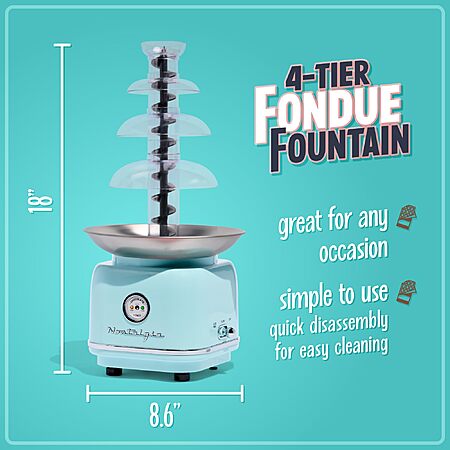 Nostalgia 4 Tier Electric Chocolate Fondue Fountain Machine, Melts Cheese, Candy, and Liqueur, 32oz, Aqua $34.99