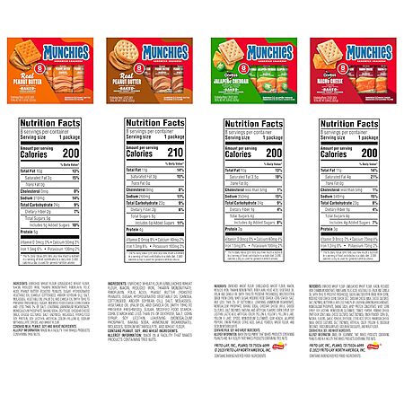 Munchies Baked Sandwich Crackers Variety Pack, Cheese Peanut Butter, Toast Peanut Butter, Doritos Nacho Cheese & Doritos Jalapeno Cheese (Pack of 32 sleeves)~$13 With S&S @ Amazon