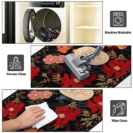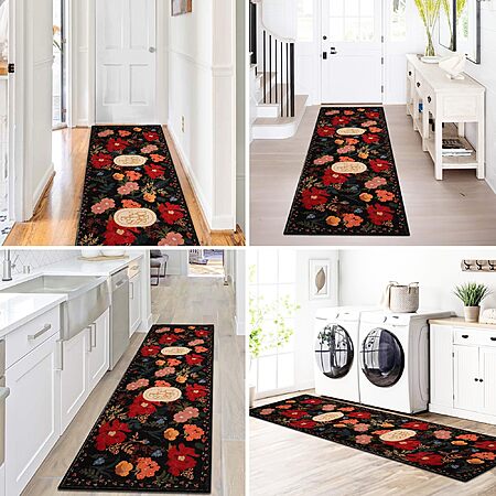 ROTTOGOON Hallway Runner Rug 2'x6' Washable Soft Floral Rug with Rubber Backing - $10.99