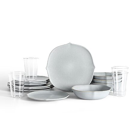 Stone Lain Baskerville 16-Piece Dinnerware Set Stoneware, Borosilicate Glass, Light Blue $41.64 +FS