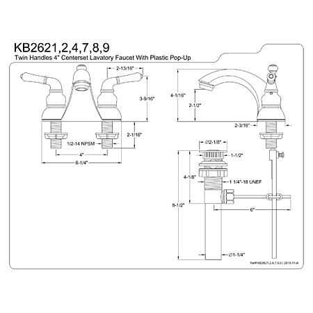 Kingston Brass KB2624 Naples 4-Inch Centerset Lavatory Faucet, Polished Chrome and Polished Brass $37.49 +FS