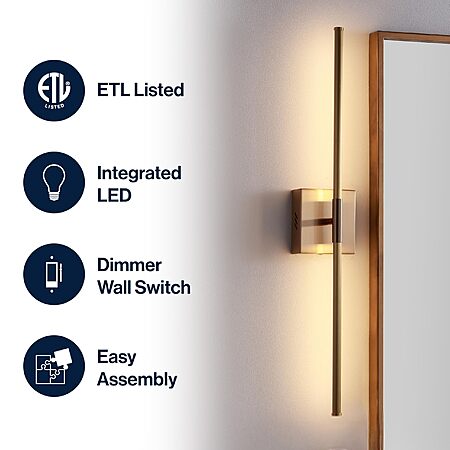JONATHAN Y JYL7022B Makena 28" Dimmable Integrated LED Metal Wall Sconce, Gold - $16.05