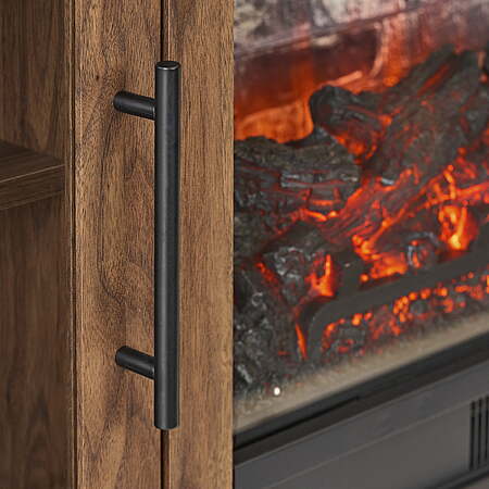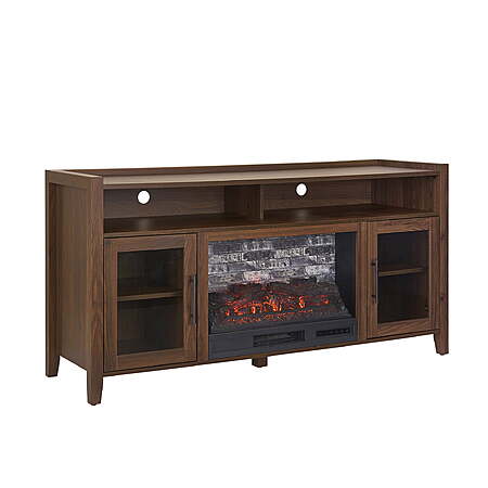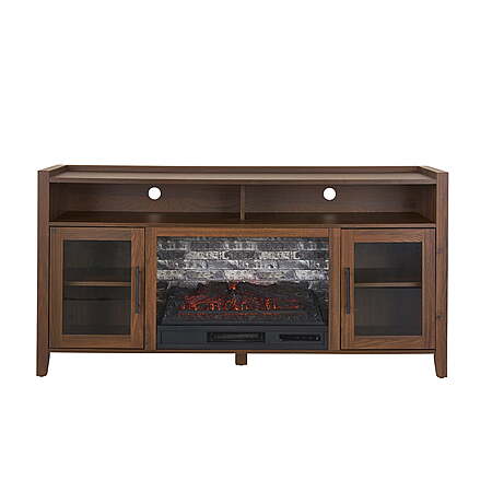 Elevate the ambiance of your home with the BHG Reading Fireplace TV Stand with Remote Control, an excellent choice that brings warmth and charm to your living room or family room at an affordable price. This TV Stand features a convenient remote-controlled 26" electric fireplace insert, providing the mesmerizing glow of a wood-burning flame without the hassle of upkeep. With the ability to heat up to 400 sq. ft., you can effortlessly achieve the perfect temperature ranging from 62° to 84°, or opt for the soothing ambiance of the multiple light settings without the heat. The LED light source ensures long-lasting performance, boasting an impressive lifespan of up to 50,000 hours, guaranteeing years of enjoyment. Designed to accommodate flat panel TVs up to 65" wide and weighing up to 100 lbs., this TV Stand offers practicality and functionality. It includes two side cabinets that discreetly conceal four storage shelves, along with a spacious open divided shelf, perfect for organizing your cable box, DVD player, or gaming systems. Experience the warmth, style, and affordability of the BHG Reading Fireplace TV Stand, a delightful addition to any home décor. This item ships in one flat box and requires assembly. Two adults are recommended to assemble. Assembled measurements: 61.9"Dx 19"W x 31"H. Sturdy engineered wood construction with walnut finish,media shelf for storage or sound bar,2 Side cabinets with adjustable interior shelves. 120V, 1400W, 4600-BTU fan-forced heate,4-level flame and ember bed brightness settings,adjustable temperature (62-84F/17-29C),26" wide insert heats up to 400 square feet. LED flame works with or without heat,push button controls with LED readout. Child lock protection Safety thermal cut-off.Timer (0.3-6 hours). Include Remote control.Heater has a overheating protection sensor that automatically shuts down prior to being too hot. Doors include transparent glass. Assembled dimensions: 61.9"Dx 19"W x 31"H Packaged dimensions: 65"D x 22"W x 10.6“H Product Weight: 134.5lbs Max loading weight: 100lbs Model: BHS436249972048 Customer ServiceNumber: 1-855-597-1828