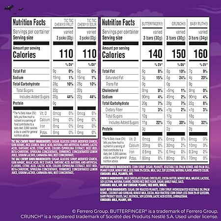 $7.90 | 25.4 oz Butterfinger, CRUNCH, Baby Ruth, TIC TAC CHEWY!, Fun Size Assorted Candy Bars at Amazon