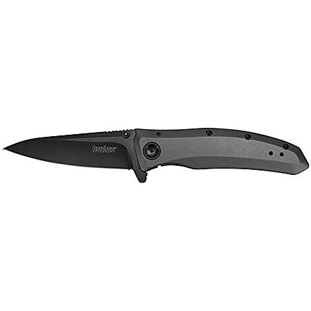 Model: Kershaw Grid Pocketknife, 3.7" 8Cr13MoV Steel Drop Point Plain Edge Blade, Assisted One-Handed Flipper or Thumb Stud Opening, Frame Lock EDC,Grey/Black