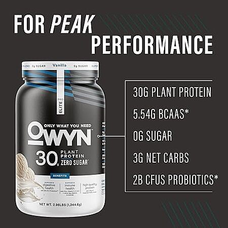 [S&S, AC] $36.65* | 2 × 2.9 lbs OWYN Only What You Need Pro Elite Vegan 30g Plant-Based High Protein Powder (Vanilla) ($18.32 each) at Amazon