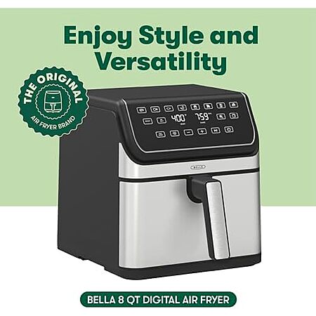 Amazon[amazon.com] has 8-Quart Bella Family Size Digital Air Fryer with TurboCrisp Technology (Stainless Steel, 1750 Watt) for $44.80. Shipping is free.