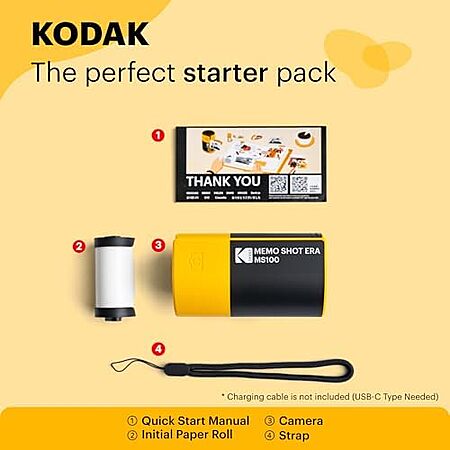 Model: KODAK Memo Shot ERA Kids Instant Digital Camera and Photo Label Printer (Yellow, Camera + 1 Roll)