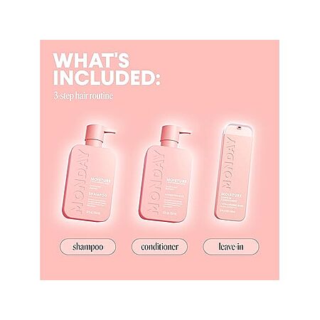 - ULTIMATE MOISTURE GIFT SET: A hair-hydrating routine of MONDAY's best-selling Moisture Shampoo 12 oz, Moisture Conditioner 12 oz and Moisture Leave-In Conditioner 5.1 oz.