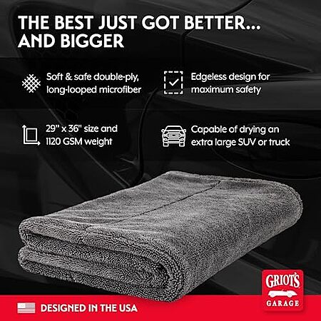 $28.30 | Griot's Garage 55596 Extra-Large PFM Edgeless Drying Towel at Amazon