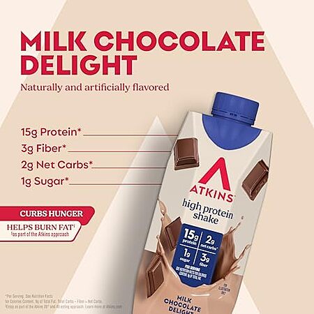 [S&S, AC] $29.38 | 2 × 12-Pack 11-Oz Atkins Deliciously Filling Protein Shake (Milk Chocolate Delight) ($14.69 each) at Amazon ($1.22 each)