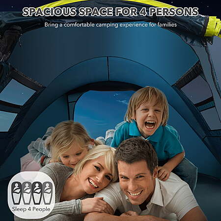 - Instant Setup: This 4-person tent features an automatic pop-up design, allowing for quick and easy setup in seconds without the need for assembly.