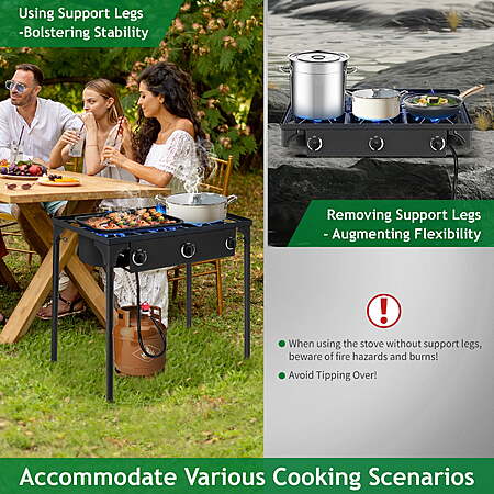 $85*:Ktaxon 3 Burner Gas Propane Cooker Outdoor Camping Picnic Stove Stand BBQ Grill