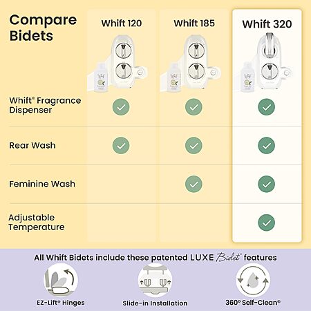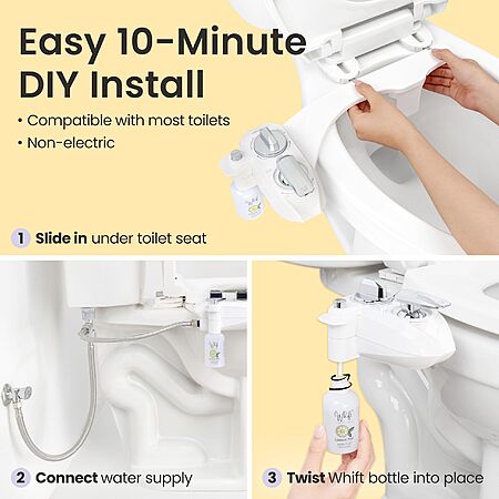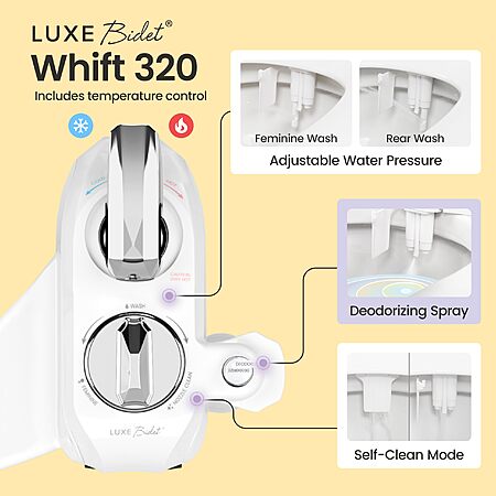 YMMV - WHIFT 320 Bidet Dual Nozzle, Built-In Deodorizing Spray, Warm Water, Non-Electric Bidet Attachment For Toilet Seat, Easy Slide-In Install, Rear & Feminine Wash