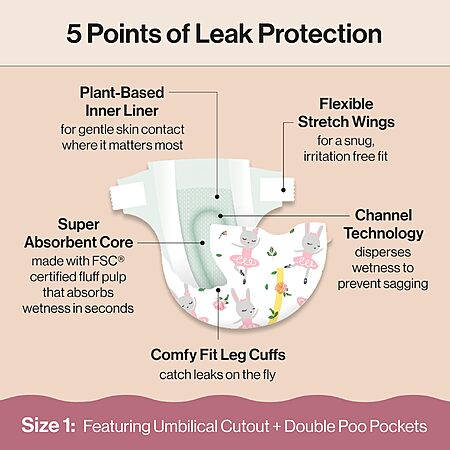 78-Count The Honest Company Comfort Dry Hypoallergenic Disposable Diapers for Sensitive Skin (Size 1; 8–14 lbs) $19.37 w/ S&S + Free Shipping w/ Prime or on $35+