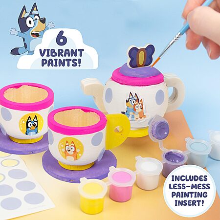 Amazon[amazon.com] has 6-pc Bluey Paint & Play Wooden Tea Set w/ Paints, Stickers & 2 Wearable Felt Crowns on sale for $6.90. -Now $7.19 Shipping is free w/ Prime or on orders $35+.