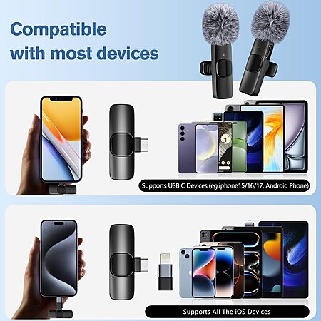 Professional Wireless Lavalier Lapel Mic for Video Recording, Mini Mic Crystal Clear Recording with USB-C $6.42
