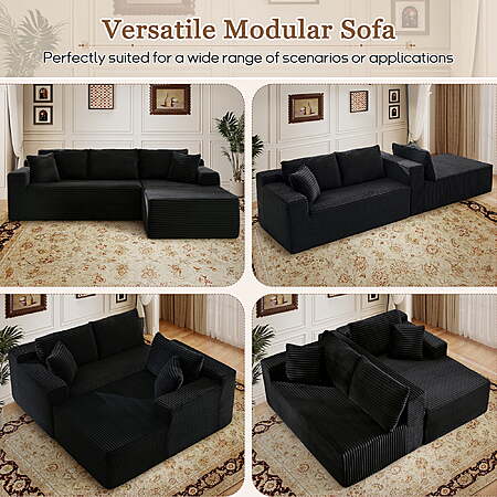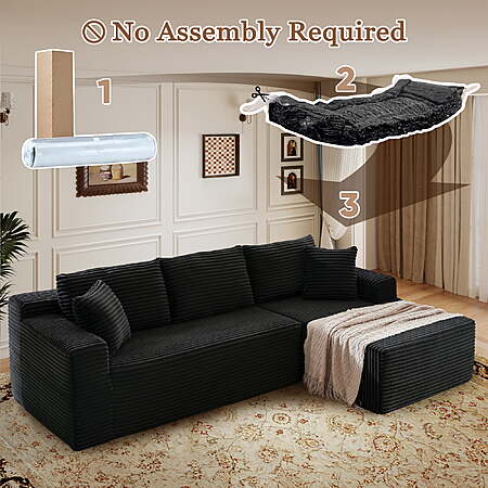 Muumblus Modular Sectional Sofa, Oversized L-Shape Cloud Couch, Modern Corduroy Sleeper Couches for Living Room, No Assembly Required, Black (Right Facing Chaise) $369