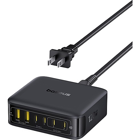 Model: Baseus Charging Station 120W, 6-in-1 USB-C PD Fast Charging Desktop Charger with 5ft Extension Cord, 4 USB C, 2 USB A Ports, Travel Power Strip for iPhone 17/16, iPad Pro, MacBook Pro, Tablet and More