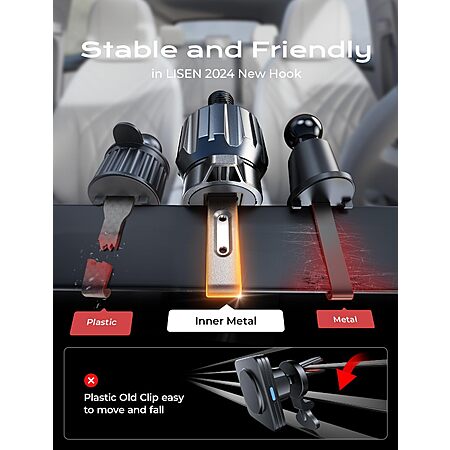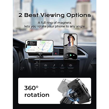 2-pk LISEN 15W MagSafe Car Vent Mount Chargers w/ 2-pk USB-A to USB-C Cables