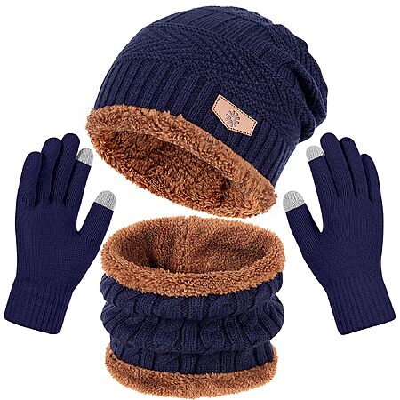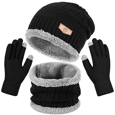 Teqihat Men's & Women's 3-in-1 Winter Beanie Hat, Neck Warmer & Gloves Set