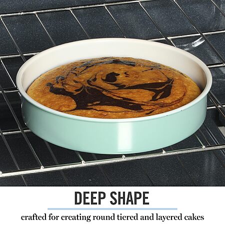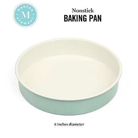 Model: Martha Stewart Gallen 8 Inch Round Nonstick Carbon Steel Cake and Bake Pan - Teal Durable Bakeware for Cakes, Pies & Desserts