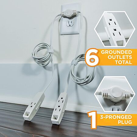 6-Outlet 12' (6'x6') Woods Mid Split Extension Cord (White)