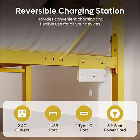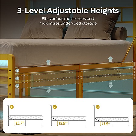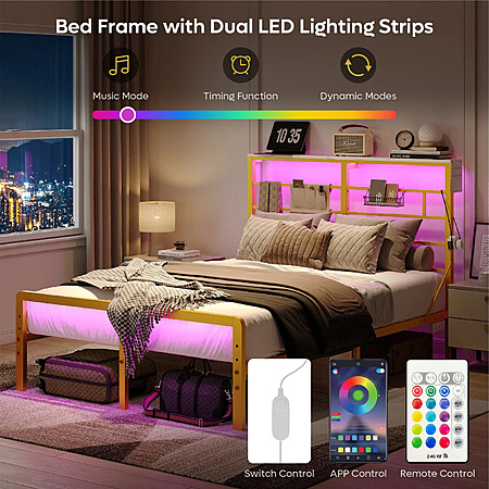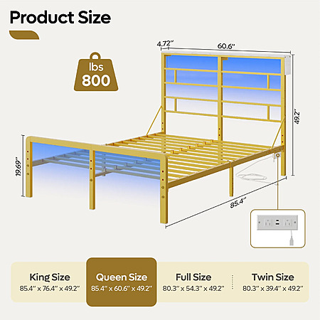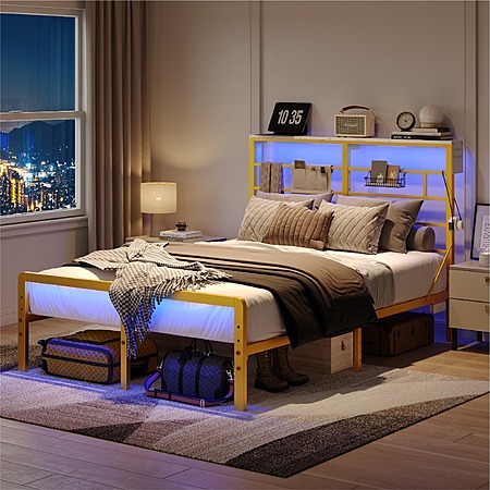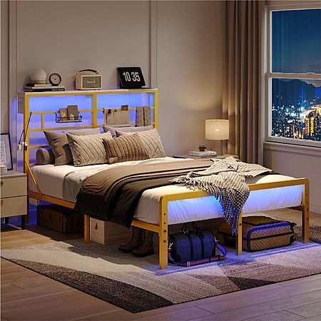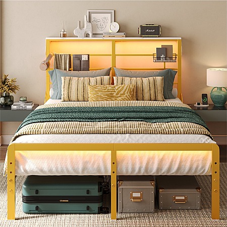 Bestier Queen Size Metal Platform Bed Frame with LED Headboard & Charging Station (Gold) $79.99 + Free Shipping
