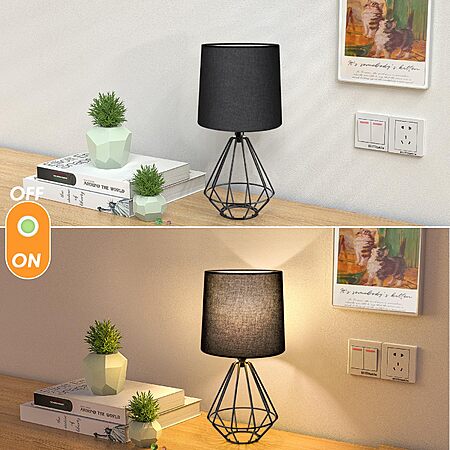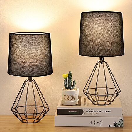 GGOYING Set of 2 Bedside Table Lamp, Black Metal Modern Lamp with Black Fabric Shade - $24.59