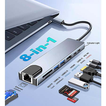 LOOKFUN 8 in 1 Usb C Hub Splitter,TF/SD Card Reader,Compatible with MacBook Pro, iPad Pro,Laptops $9.6