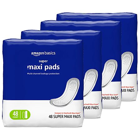 Model: Amazon Basics Thick Maxi Pads for Periods, Super Absorbency, Unscented, 192 Count (4 Packs of 48) (Previously Solimo)