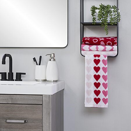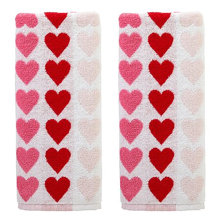 SKL Home Valentine's Tonal Hearts Hand Towel 2pc Set for Bath/Kitchen/Bar & Gift, Pink $7.50 +FS w/Prime