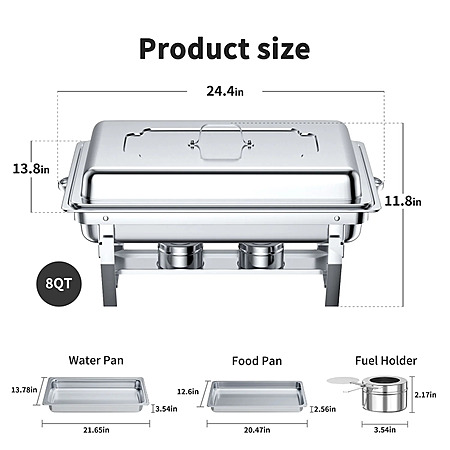 8QT Stainless Steel Chafing Dish Buffet Set 4 Pack: Warmers Sets for Parties, Events, Wedding, Camping, Dinner for $80.99
