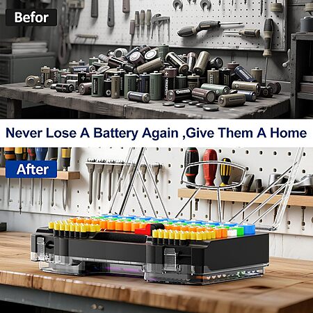 Battery Organizer Storage Holder Box w/ Tester $12.34