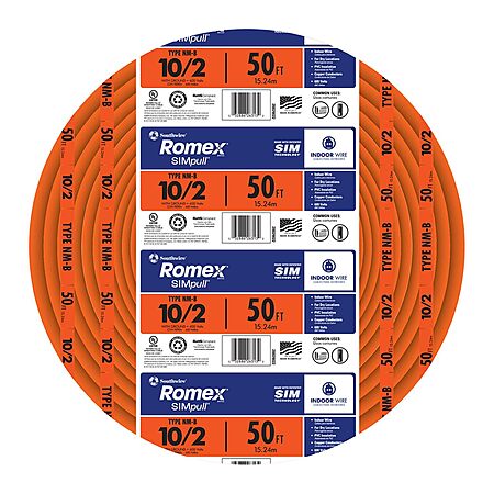 $62.18: Southwire Romex Brand Simpull Solid Indoor 10/2 W/G NMB Cable 50ft coil - SW# 28829022