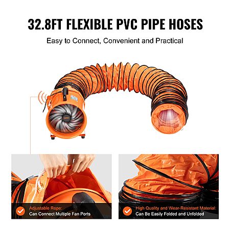 VEVOR Air Mover Blower Fan 12 Inch, 3198CFM 585W with 33ft Flexible Duct, Industrial Portable Ventilator Blower/Exhaust, Orange on sale for