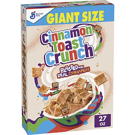 Cinnamon Toast Crunch Breakfast Cereal, Crispy Cinnamon Cereal, Giant Size, 27 oz~$4.24 With S&S @ Amazon